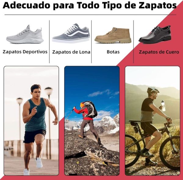✅ Tipo de calzado adecuado: calzado deportivo, zapatos de cuero, botas, calzado casual y calzado de trabajo.